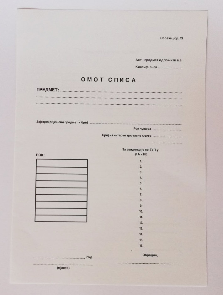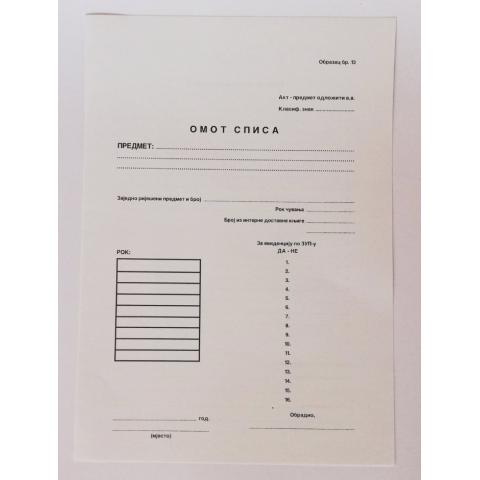 Obrazac A4 MP Omot spisa